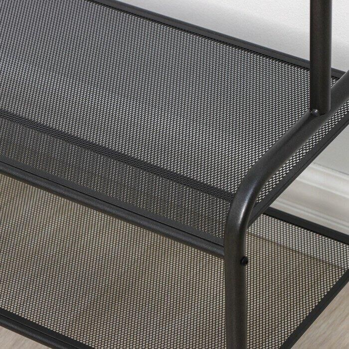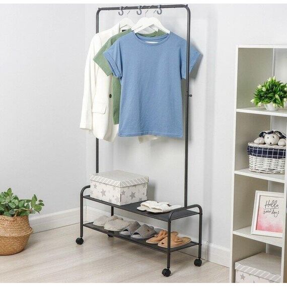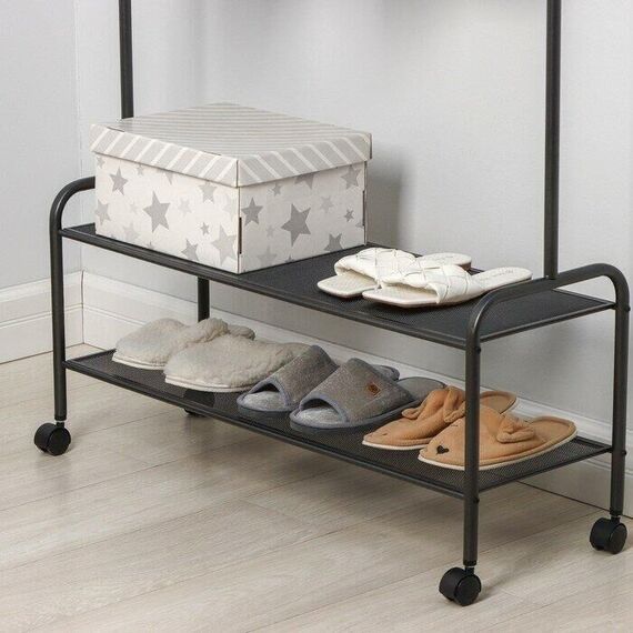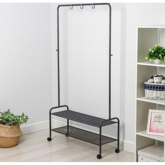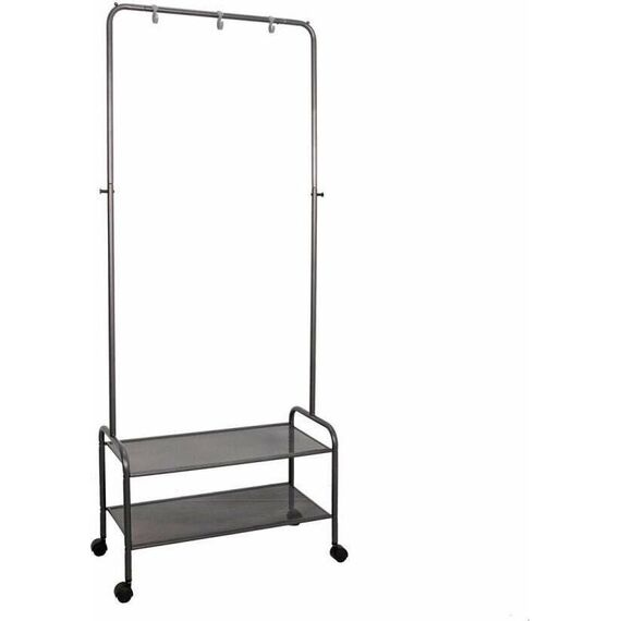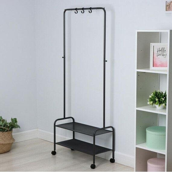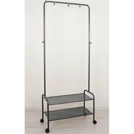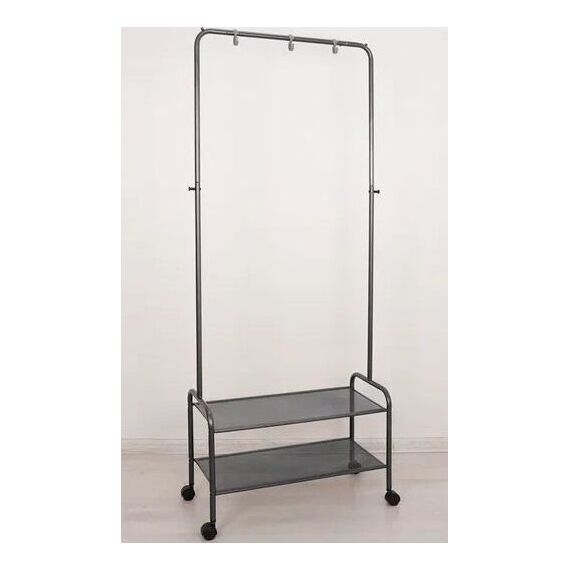 Назначение Для размещения одежды. Материал Труба диаметром 18 мм, стальные шарики; пластиковые подпятники, полимерно-порошковое покрытие, пластик. Габариты (Д*Ш*В) 69,5х31х162 см.