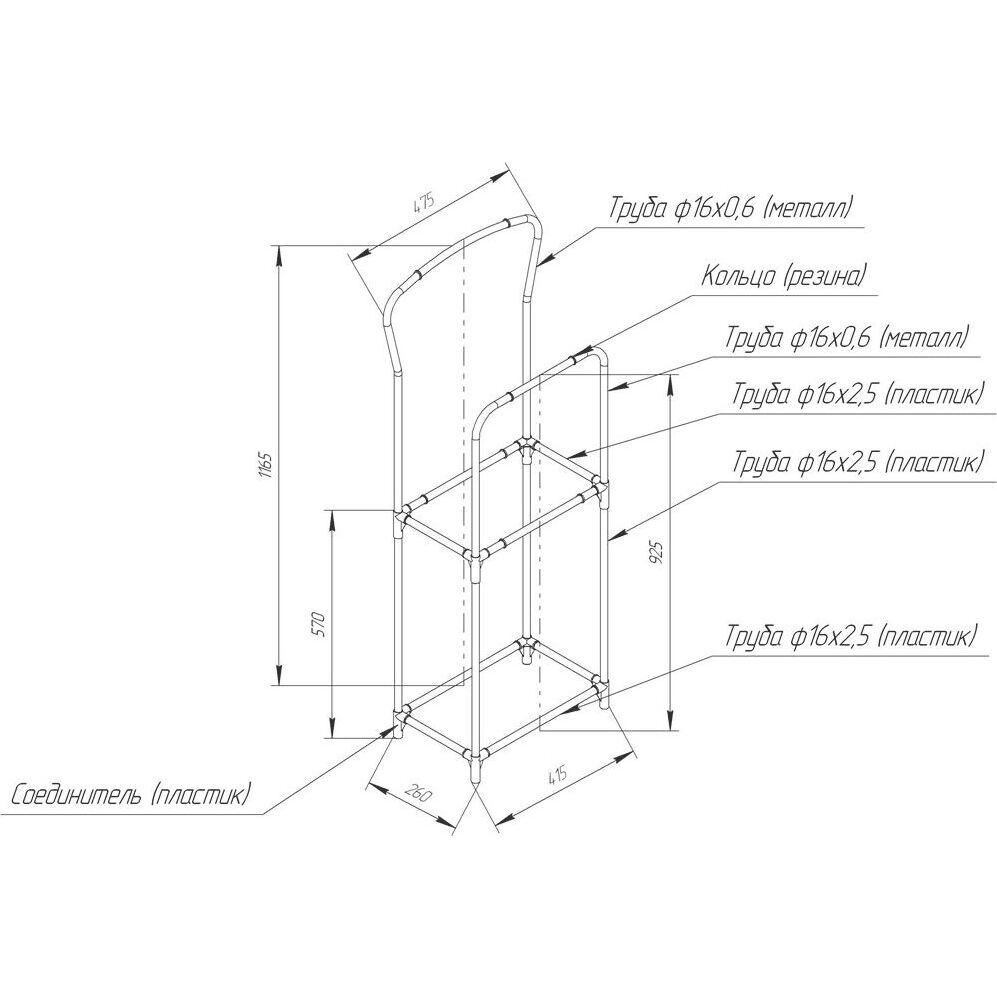 Размер изделия: Ширина 475 мм Глубина 260 мм Высота 1165 мм Костюм на видном месте. Доступная по цене вешалка, незанимающая много места. Предусмотрены две штанги и две перекладины для брюк и пиджака. Резиновые кольца на штанге и перекладинах не позволят вещам соскальзывать. Верхняя штанга выполнена из металлической трубы, диаметром 16мм. Нижние стойки выполнены из пластиковой трубы, диаметром 16 мм. Порошковая окраска металла, стойкая к механическим повреждениям. Максимальная распределенная нагрузка на одну штангу 6 кг, на одну перекладину 6 кг. Изделие полностью разборное, что обеспечивает простоту сборки и хранения.