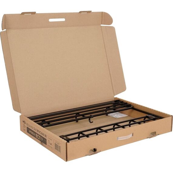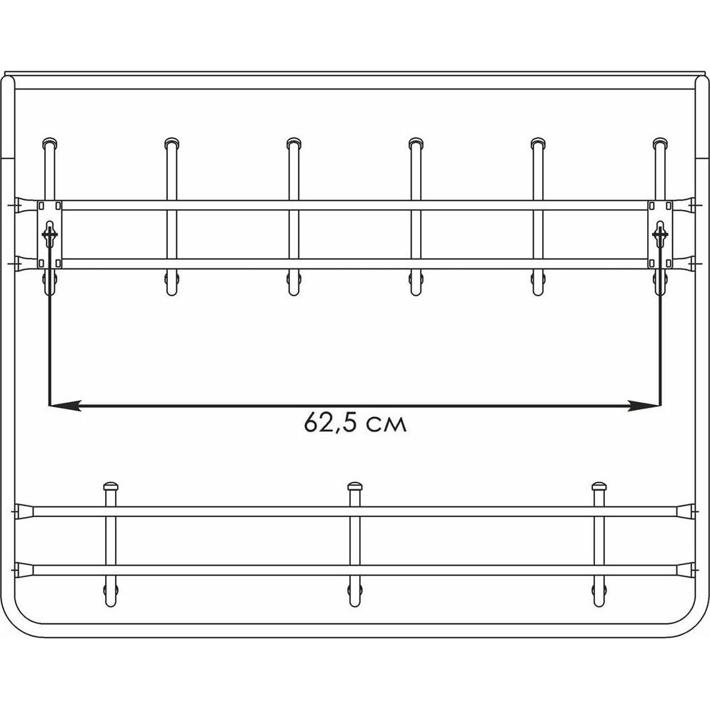 Материал — Сталь, полимерное покрытие. Индивидуальная упаковка — 755х530х100 мм. Габариты (Д*Ш*В) — 73х58х22 см. Максимальная нагрузка, кг — до 5 кг на крючок.