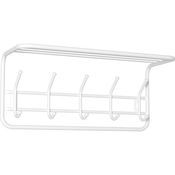 Надежная сборно-разборная конструкция. — компактная вешалка с 5-ю крючками. — удобная полка для хранения головных уборов. — допустимая нагрузка до 5 кг на крючок. — Удобный пластиковый крючок для мелочей. — Расстояние между крепёжными отверстиями 500 мм. Материал Сталь, полимерное покрытие. Габариты (Д*Ш*В) 60х22х26,5 см.