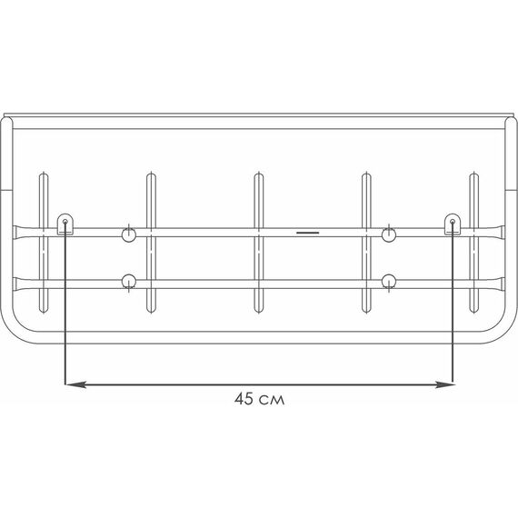 Материал — Сталь, полимерное покрытие. Индивидуальная упаковка — 630х230х100 мм. Габариты (Д*Ш*В) — 60х22х26,5 см. Максимальная нагрузка, кг — до 5 кг на крючок.
