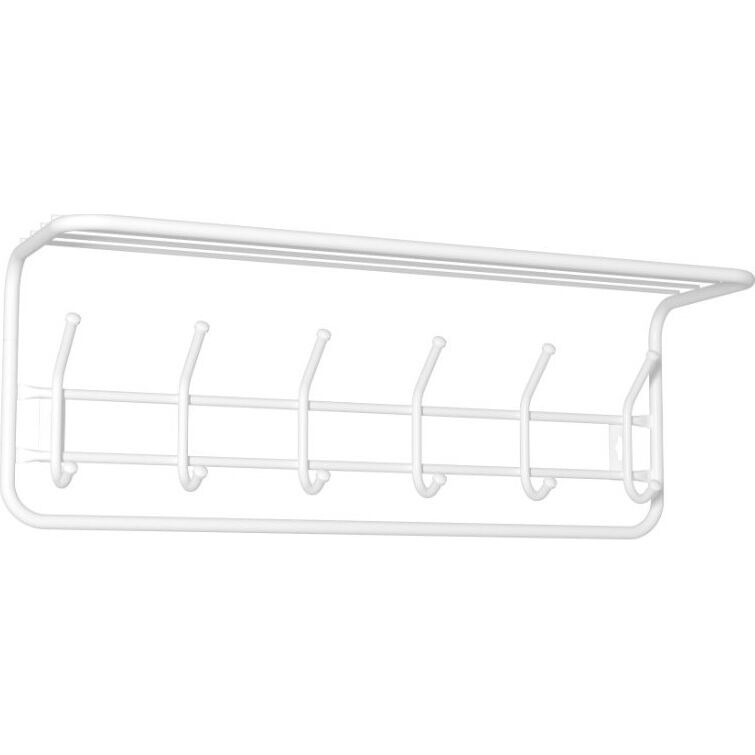 Надежная сборно-разборная конструкция. — компактная вешалка с 6-ю крючками. — удобная полка для хранения головных уборов. — допустимая нагрузка до 5 кг на крючок. — Удобный пластиковый крючок для мелочей. — Расстояние между крепёжными отверстиями 625 мм Материал Сталь, полимерное покрытие. Габариты (Д*Ш*В) 73х22х26,5 см.