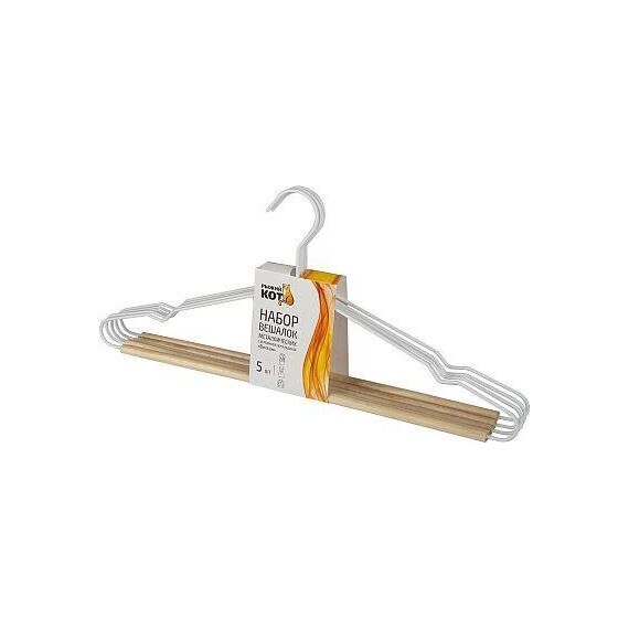 РЫЖИЙ КОТ Набор вешалок металлических с деревянной перекладиной Винтаж, цвет белый, 5 шт