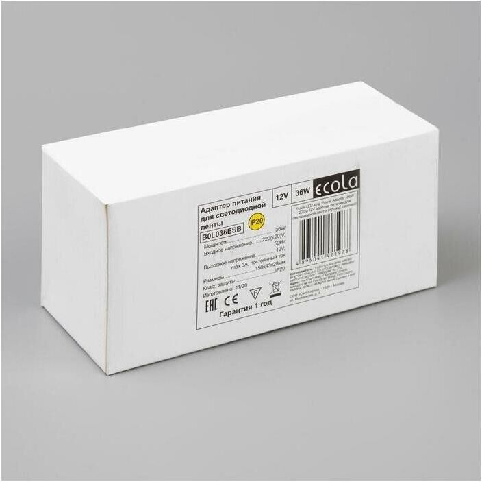 Блок питания ECOLA B0L036ESB 36W 220V-12V адаптер питания для светодиодной ленты