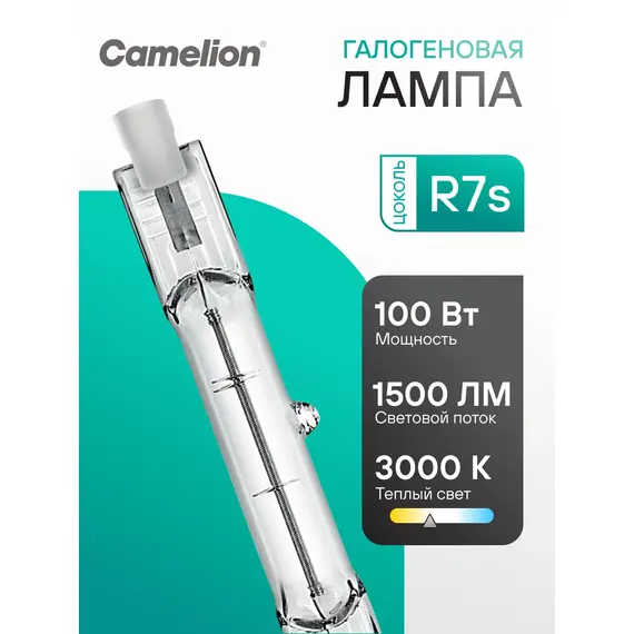 Camelion 2932 J78 100W R7s — линейная галогенная лампа мощностью 100 Вт с цоколем R7s, предназначенная для прожекторов, светильников внутреннего и наружного освещения, а также для подсветки витрин и интерьеров. Обеспечивает яркое тёплое белое свечение.