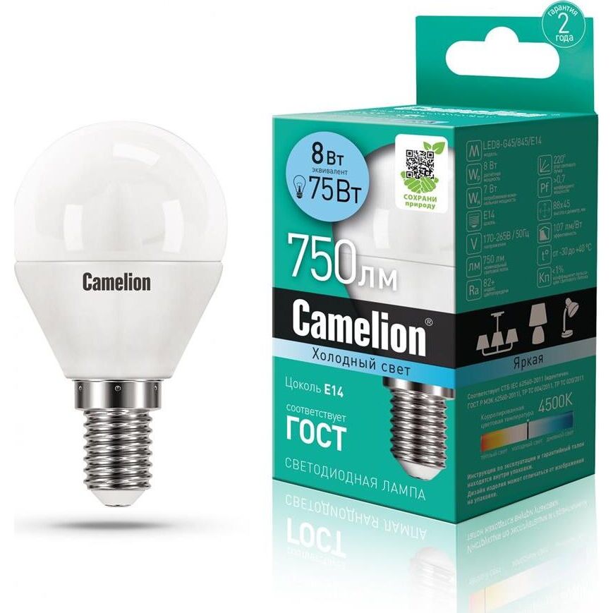 Лампа светодиодная CAMELION (12393) LED8-G45/845/E14/4500К