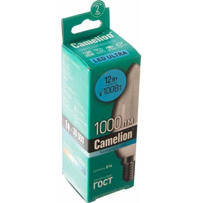 Лампа светодиодная CAMELION (13689) LED12-C35/845/E14/12Вт/4500К