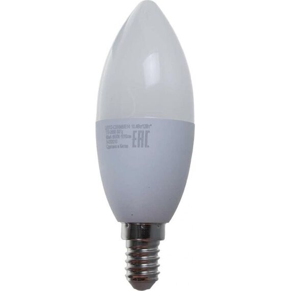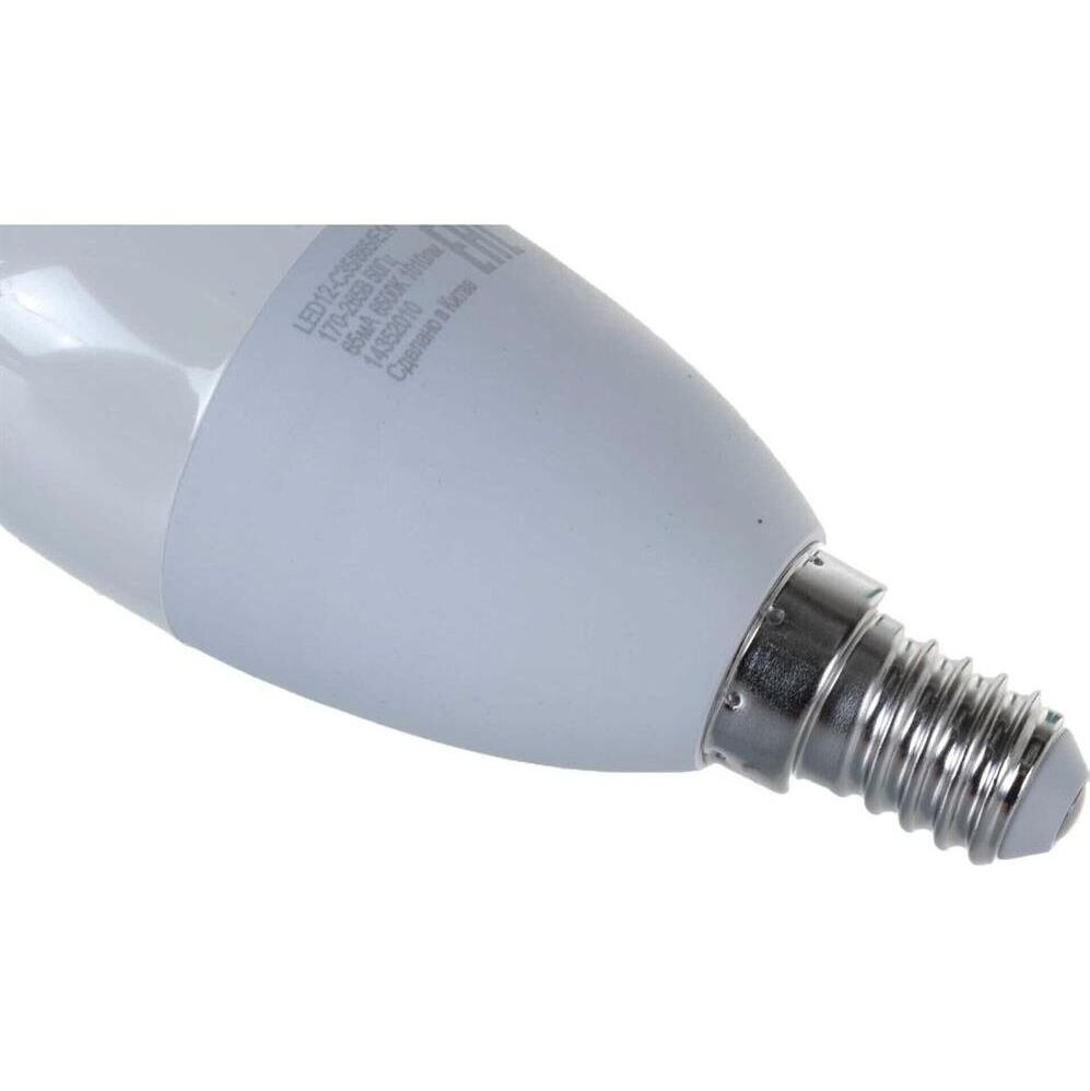 LED лампа, мощность, Вт - 12, напряжение, В - 170-265, световой поток, лм - 1010, форма колбы - свеча, цвет колбы - белый, цоколь E14, цветовая температура, К - 6500, угол светового пучка - 220, индекс цветопередачи 80+, срок службы, ч. - 30000
