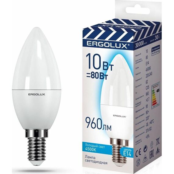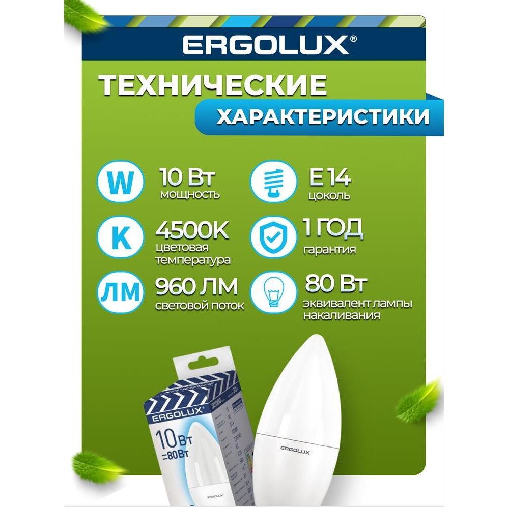 Лампа светодиодная ERGOLUX (14545) LED-C35-10W-E14-4K