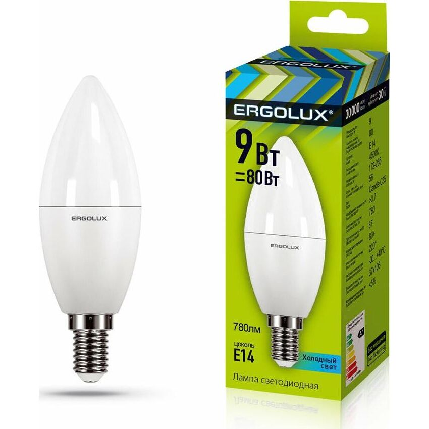 Лампочка светодиодная ERGOLUX (13168) LED-C35-9W-E14-4K