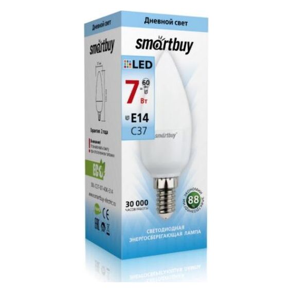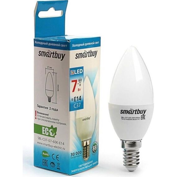 Светодиодная (LED) Лампа SMARTBUY (SBL-C37-07-60K-E14) 7W/6000/E14