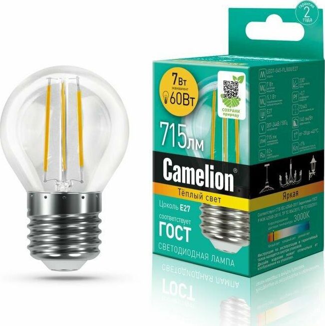 Лампа CAMELION (13457) LED7-G45-FL/830/E27