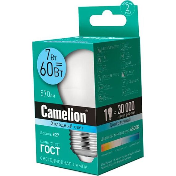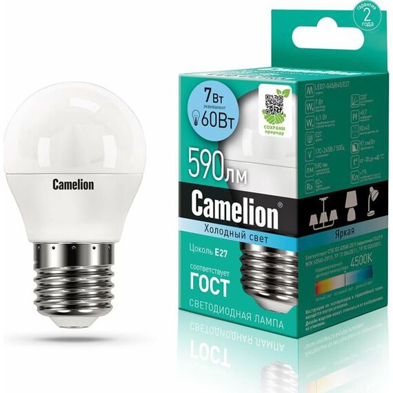 Лампа светодиодная CAMELION (12072) LED7-G45/845/E27