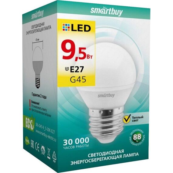 Лампа светодиодная SMARTBUY (SBL-G45-9_5-30K-E27) 9.5W/3000/E27