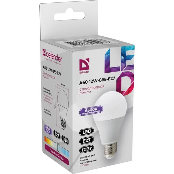 Лампочка DEFENDER (95023) A60-12W-865-E27 груша, холодный дневной, 1 шт