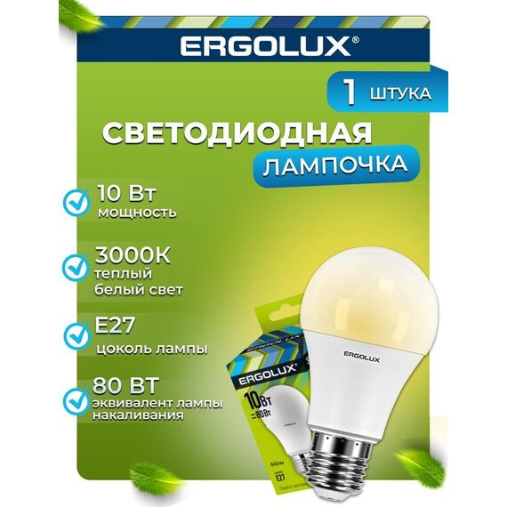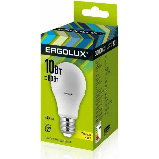 Лампочка светодиодная ERGOLUX (12148) LED-A60-10W-E27-3K
