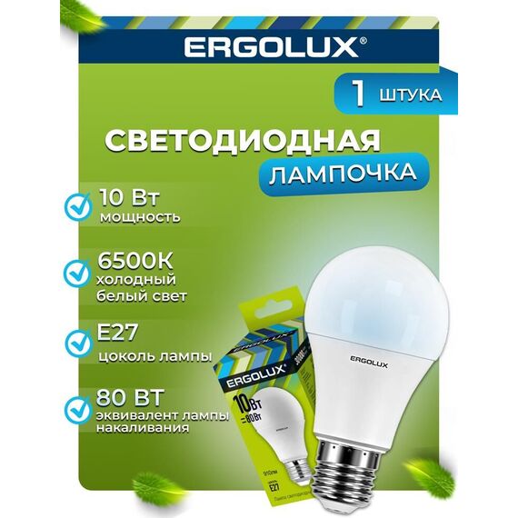 Лампочка светодиодная ERGOLUX (12879) LED-A60-10W-E27-6K