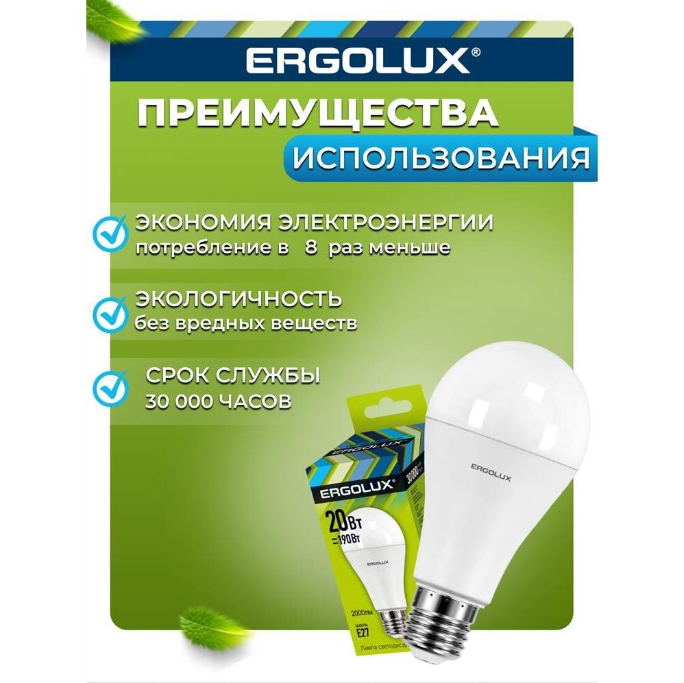 Лампочка светодиодная ERGOLUX (13184) LED-A65-20W-E27-6K