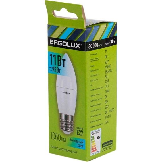 Лампочка светодиодная ERGOLUX (13622) LED-C35-11W-E27-4K