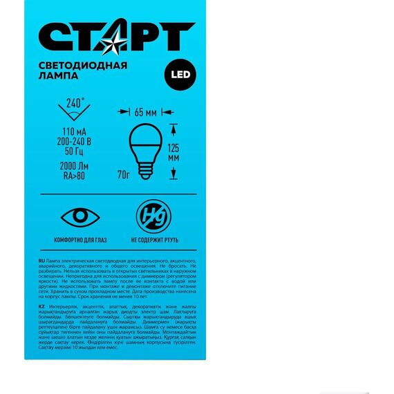 Светодиодная лампа СТАРТ (464) LEDGLSE27 25W 65 WS 10/101 черный