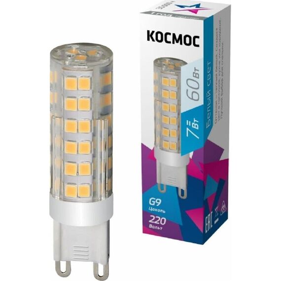 Лампа светодиодная,7Вт G9 220В 4500K, керамика + пластик (3шт/уп.) Является аналогом капсульной галогеновой лампы 60Вт с цоколем G9. Имеет схожие габариты - ее габариты 16мм на 52мм. Цвет свечения - белый. В основе лампы используются чипы от мирового лидера Epistar, что обеспечивает надежную и стабильную работу в течение всего срока службы (30 000 часов). До 90% экономии энергии по сравнению с обычной лампой накаливания (сопоставимы по размеру); стабильный световой поток в течение всего срока службы; экологическая безопасность (не содержит ртути и тяжелых металлов); мягкое и равномерное распределение света повышает зрительный комфорт и снижает утомляемость глаз; благодаря высокому индексу цветопередачи (>80), свет лампы комфортен и передает естественные цвета и оттенки; Цвет свечения лампы - 4500 К нейтральный белый, идеально подойдет для кухни, коридора, и других зон, где требуется нейтральное освещение.