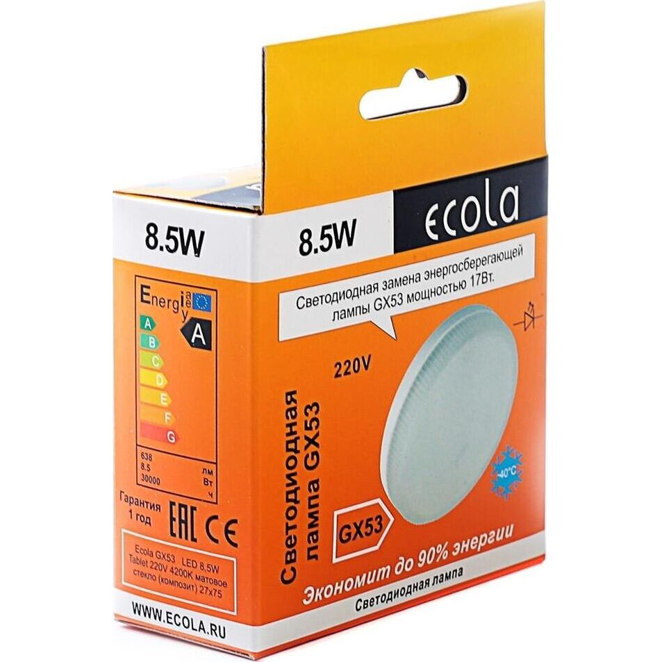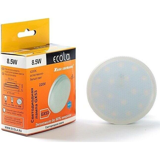 Лампа светодиодная ECOLA T5QV85ELC GX53 8,5W TABLET 220V 4200K матовая 27X75