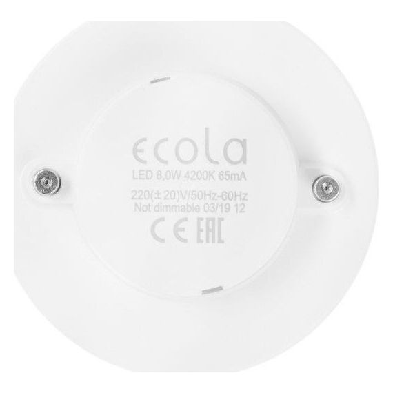 ECOLA Light GX53 LED 8,0W Tablet 220V 4200K 27x75 матовое стекло 30000h (1 из ч/б уп. по 10) Цоколь GX53 Мощность 8,0W Цветовая температура 4200K Напряжение 220В Средний срок службы 30000 часов Размер 27x75 мм