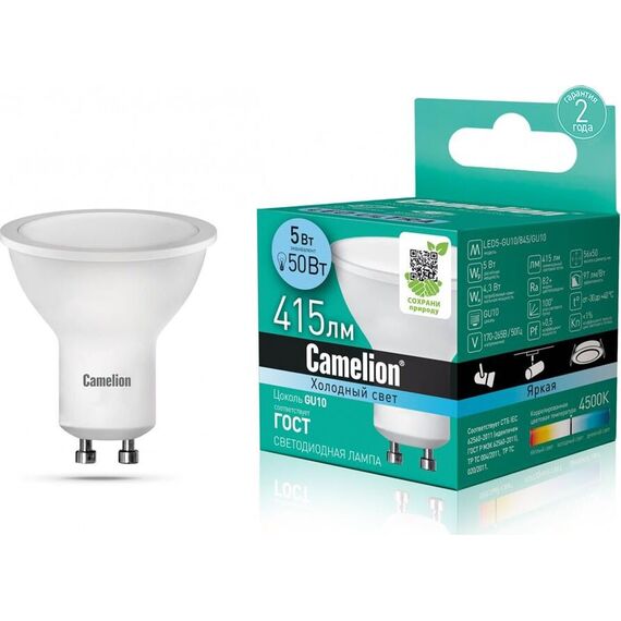 Лампа CAMELION (10957) LED5-GU10/845/GU10/5Вт