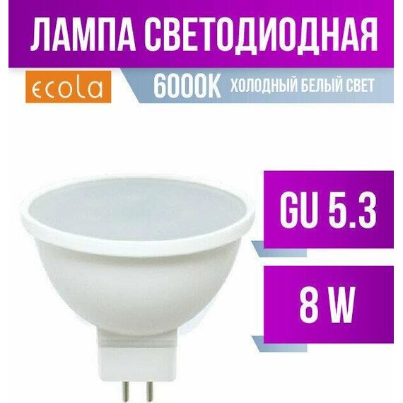 Лампа светодиодная ECOLA M2UD80ELC MR16 PREMIUM 8,0W 220V GU5.3 6000K матовая 48х50