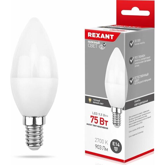 Лампа светодиодная REXANT (604-023) (CN) 9,5 ВТ E14 903 ЛМ 2700 K