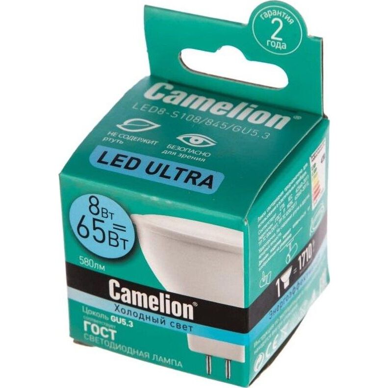 Лампочка светодиодная CAMELION LED8-S108/845/GU5.3 (Эл.лампа светодиодная JCDR 8Вт 220В)