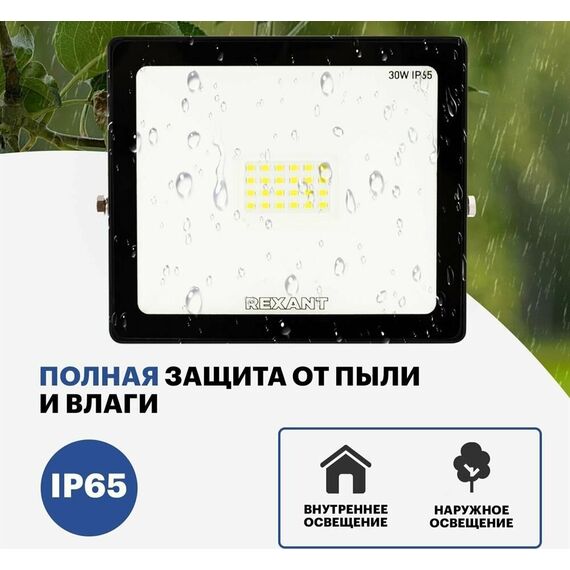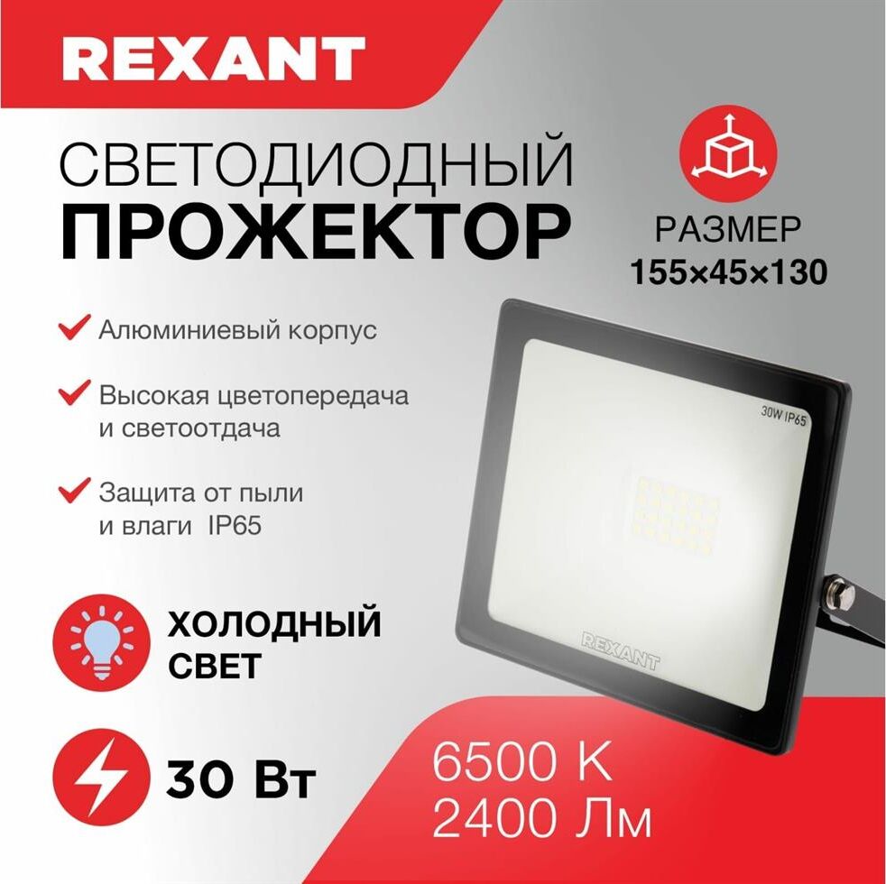 Прожектор светодиодный REXANT (605-003) 30 Вт 200-260В IP65 2400 лм 6500 K холодный свет