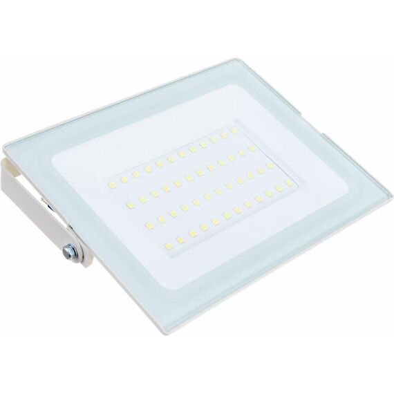 Светодиодный прожектор Ultraflash LFL-5001 C01 белый (LED SMD прожектор, 50 Вт, 230В, 6500К), размер 185*135*35 мм, источник света - встроенные светодиоды, мощность 50Вт, световой поток - 3500лм, металл + стекло.