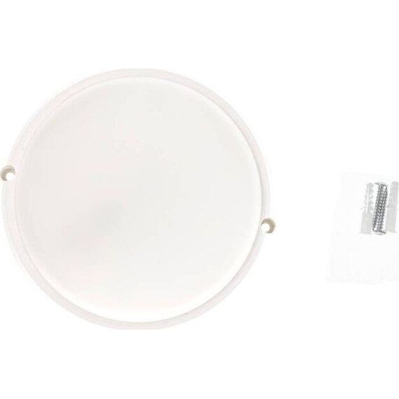 "Мощность: 15 Вт , Световой поток: 1200 Лм, Угол освещения: 120°, Напряжение: 110-265 В , Степень защиты: IP54, Цветовая температура: 6500К, Частота тока: 50 Гц , Материал корпуса: полипропилен, Цвет корпуса: белый, Рассеиватель: матовый , Поддержка управления яркостью: есть, Форма: круг, Индекс цветопередачи: >80 , Срок службы: 35000 ч, Температура применения: -30...+50 °C, Тип датчика движения: микроволновый , Регулировка: нет, Оптический порог срабатывания: 5 люкс, Временный интервал освещения: 30 с, Диапазон высот установки: до 8 м, Радиус зоны обнаружения: до 6 м, Габаритные размеры (ГхШхВ): 140х140х48 мм , Вес: 0,145 кг"