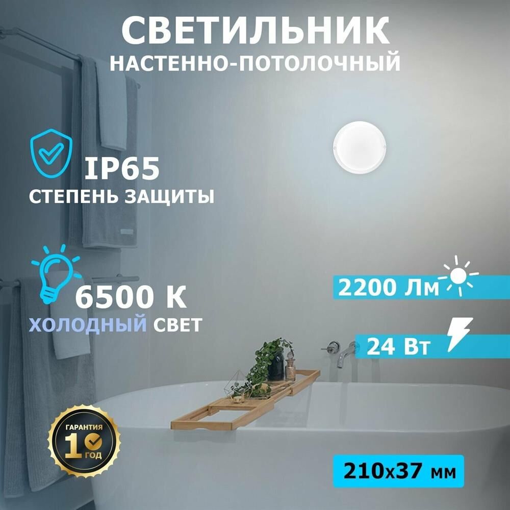 REXANT Светильник ЖКХ LED пылевлагозащищенный круг IP65 24Вт 2280Лм 6500K