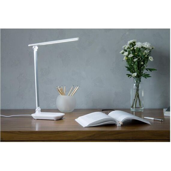Потребляемая мощность 6W Световой поток 400 Материал корпуса металл + пластик Сенсорный выключатель, с диммером Цвет: белый, Размер: 285*110*385мм Длина шнура 1,5м