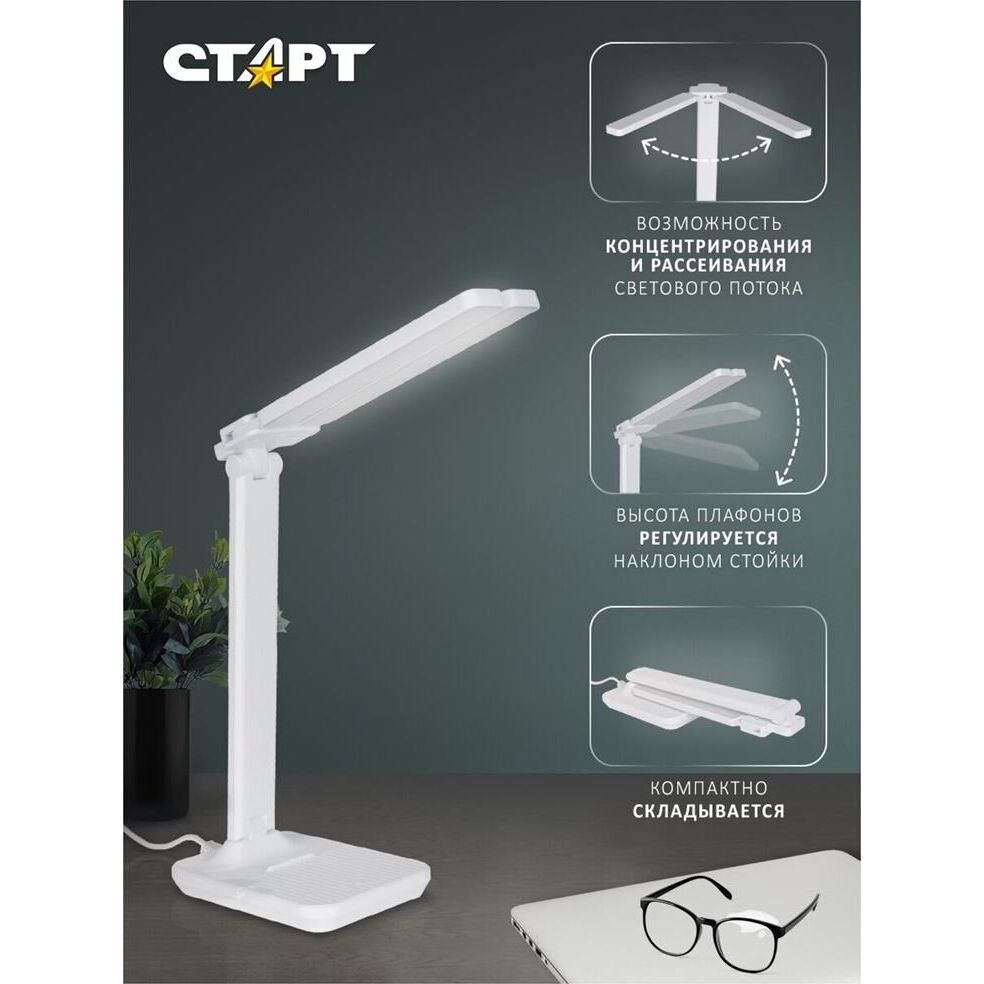 Мощность: 10 Вт Цветовая температура: 4100 K Световой поток: 650 Лм Материал: пластик/метал Размер: 300x150x370 мм Сенсорный выключатель, три уровня яркости, расширенная площадь освещения Высота расположения плафона регулируется сгибающейся стойкой. Нап