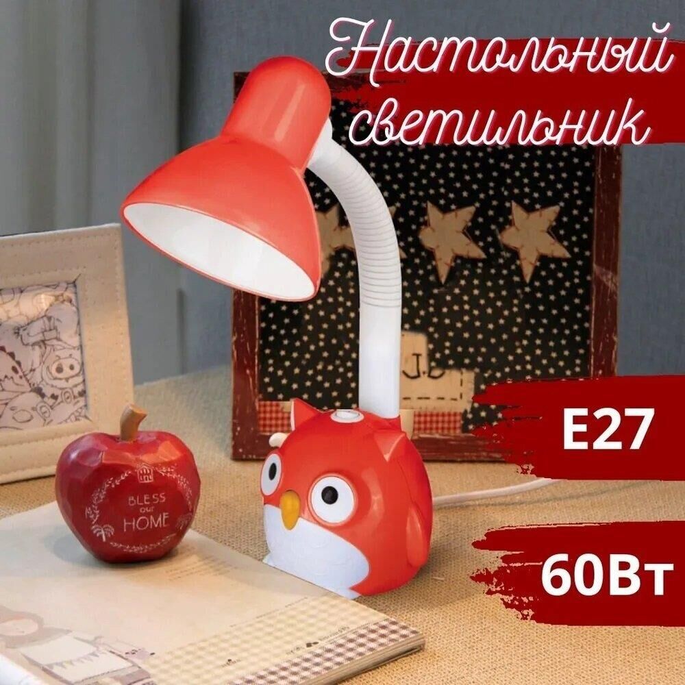 Настольный светильник Camelion KD-380 "Сова" C04 красный, размер 345х120х140мм, источник света - лампа шарик, тип лампы - 40/D/E27, патрон - E27, мощность 40Вт, ~230 В, 50 Гц. Металлический плафон, керамический патрон