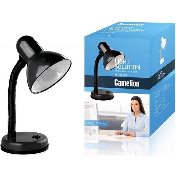 Настольный светильник Camelion KD-301 C02 черный, размер 200х140х130мм, источник света - ЛОН, тип лампы - 40/А/Е27, патрон - E27, мощность 40Вт, 230 В, 50 Гц.