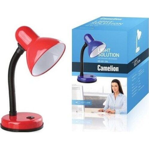 Настольный светильник Camelion KD-301 C04 красный, размер 200х140х130мм, источник света - ЛОН, тип лампы - 40/А/Е27, патрон - E27, мощность 40Вт, ~230 В, 50 Гц.
