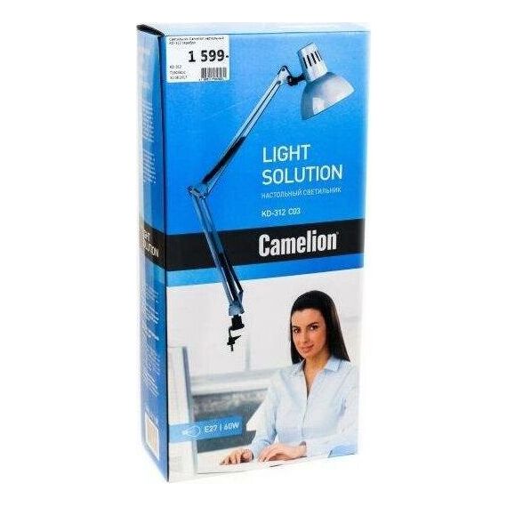 Настольный светильник Camelion KD-312 C03 серебро, размер 415х200х90мм, источник света - ЛОН, тип лампы - 60/А/Е27, патрон - E27, мощность 60Вт, 230 В, 50 Гц.
