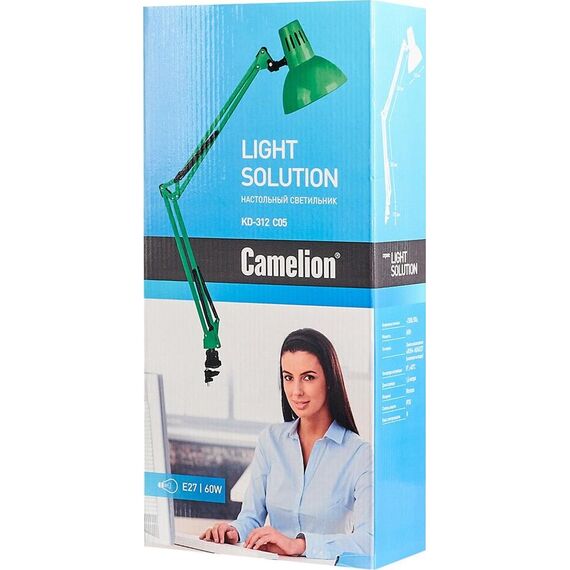 Настольный светильник Camelion KD-312 C05 зеленый, размер 415х200х90мм, источник света - ЛОН, тип лампы - 40/А/Е27, патрон - E27, мощность 40Вт, ~230 В, 50 Гц.
