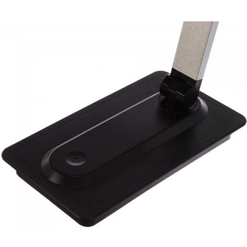 """Стильный дизайн светильника Camelion KD-846 украсит интерьер, оформленный в любом стиле. Плафон и стойка светильника изготовлены из алюминия, а основание -из прочного ABS-пластика. При транспортировке и хранении светильник может быть компактно сложен. Тип установки светильника : на основание. После установки светильника на стол возможно регулировать наклон стойки и наклон плафона. Источник света светодиоды 2-х температур свечения интегрированные в плафон светильника, позволяющие иметь 3 режима цветовой температуры (3000, 4500, 6000 К). Применение разных цветовых температур свечения позволяет создать комфортную атмосферу для работы, учебы или отдыха. Три ступени регулировки яркости. Мощность- 8 Вт. Максимальный световой поток 400 лм. На основании светильника расположена одна сенсорная кнопка управления светом: вкл/выкл, плавное изменение яркости, изменение цветовой температуры.