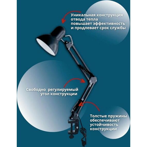 Светильник настольный Ultraflash UF-312P (230V 60W) - Черный, размер 90х125х570мм, источник света - ЛОН, тип лампы - 60/А/Е27, патрон - E27, мощность 60Вт, ~230В, 50Гц.