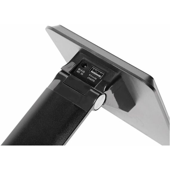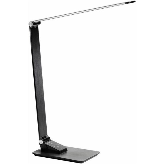 Сенсорное управление; Пять уровней яркости, пять режимов цветовой температуры; Функции беспроводной зарядки. Характеристики SBL-DL-11-wc-b Рабочее напряжение 240 В Максимальная мощность 11 Вт Тип лампы Светодиоды Длина провода, м 1,5 Размеры, мм 450*200*120 Вес, г 780 Цветовая температура 2700-6000К Световой поток 550 Лм Цвет корпуса Черный