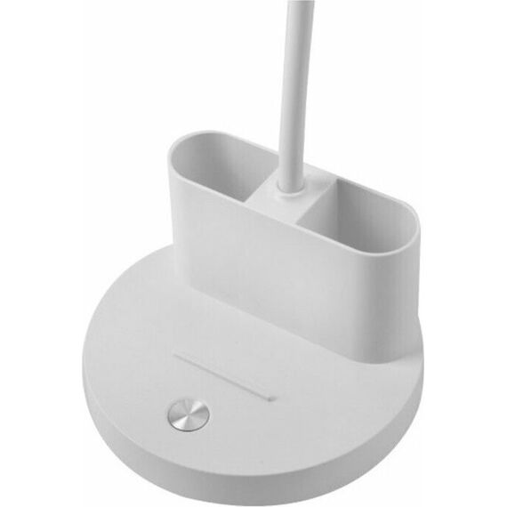 Светильник светодиодный настольный Ultraflash UF-818 с подставкой для письменных принодлежностей и телефона предназначен для освещения индивидуального рабочего пространства. Наличие аккумулятора обеспечивает мобильность светильника, а гибкая стойка позволяет регулировать угол наклона. Основные характеристики: Цвет белый, источник света - встроенные светодиоды, мощность 6Вт, световой поток 300Лм, цветовая температура 6000К, 3 уровня яркости, питание от сети и аккумулятора, время работы от аккумулятора 6-8ч, материал пластик. Гарантия 12 месяцев.