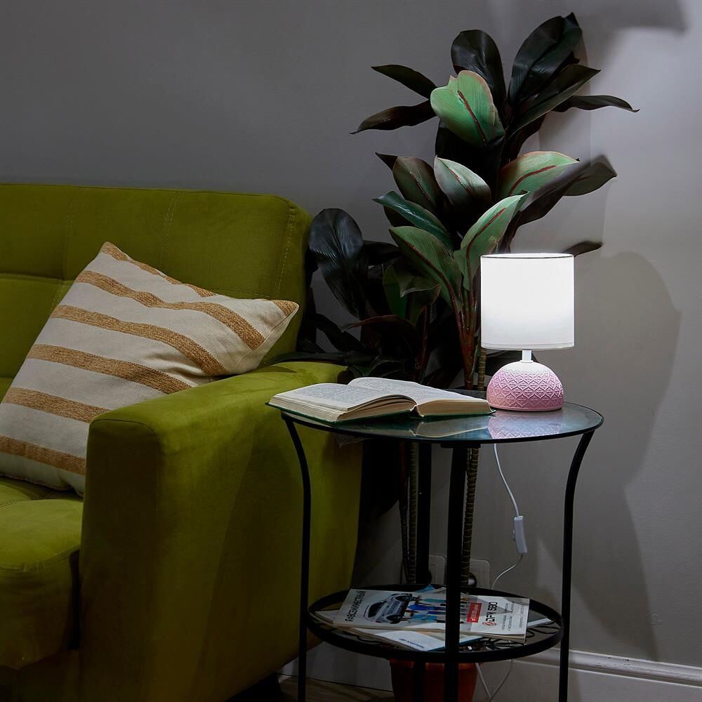 Настольная лампа,Цоколь E14 Способ установки настольный Патрон E14 Мощность, Вт 40 Входная частота, Гц 50 Входное напряжение, В 230 Частота, Гц 50 Выходное напряжение, В 230 Угол светового потока, ° 360 Высота изделия, мм 240 Вес изделия, гр. 500 Длина провода, м 1,3 Материал корпуса (изделия) керамика, сталь, ткань Цвет корпуса (изделия) розовый