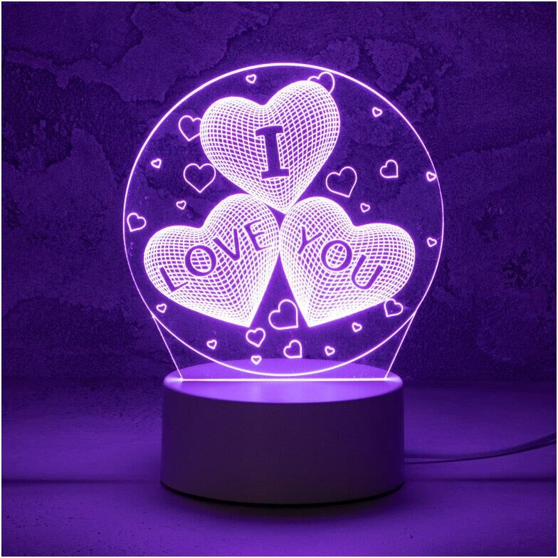 Ночник Три сердца, в подарок ребенку и взрослому, любимым и родным. Создает уют и комфорт в помещении. Ночной светильник создает атмосферу сказки и волшебства. Материал: пластик; Напряжение: 5 В; Мощность: 3 Вт; Размер основания: 9,5 x 9,5 x 4 см; Размер светильника: 17 x 14 см; Длина сетевого шнура: 1 м; Режим свечения: постоянное свечение; Цвет свечения: красный.