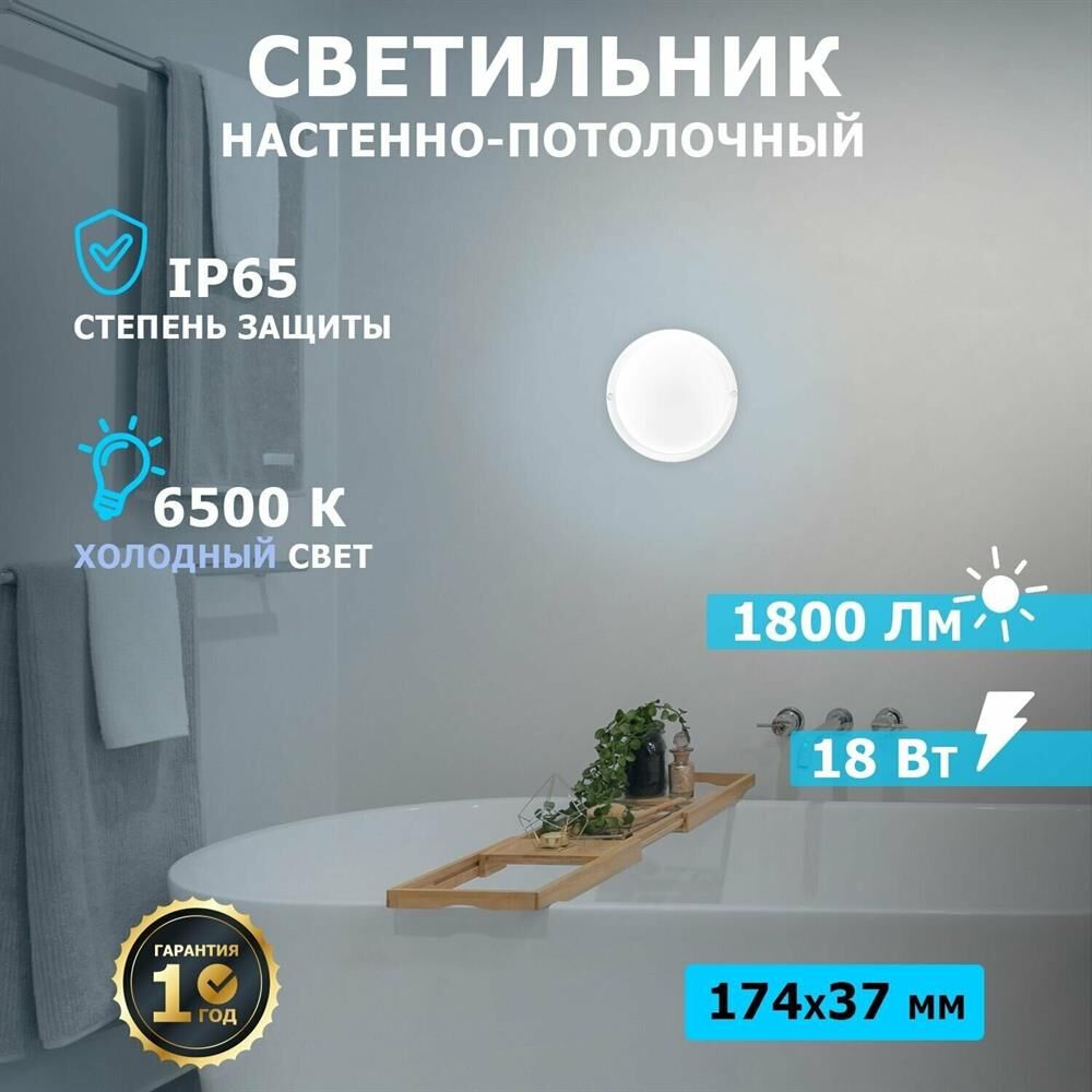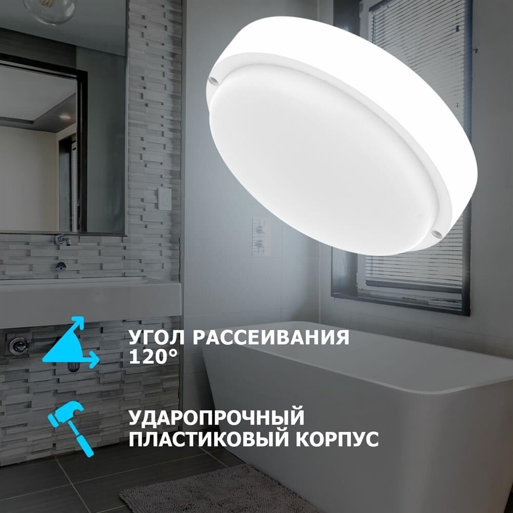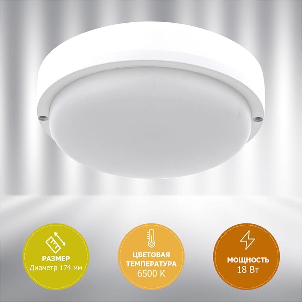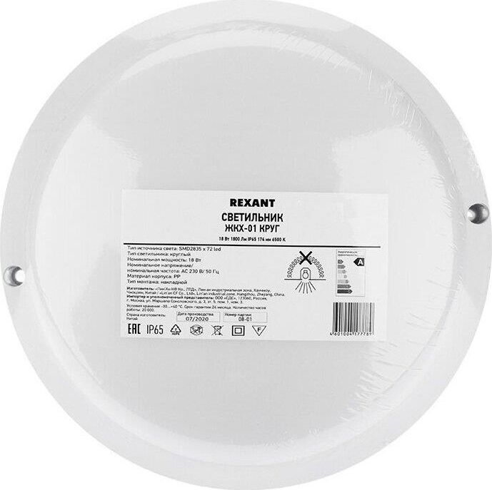 Вандалозащищенный накладной светильник REXANT серии ЖКХ предназначен для освещения прилегающих территорий, переходов, подсобных помещений и входных групп. Корпус из ударопрочного пластика с высокой степенью защиты IP65 позволяет использовать светильник на улице под прямыми солнечными лучами и под проливным дождем. Высокая светоотдача круглого светильника с цветовой температурой 6500 К (холодное свечение) и углом рассеивания 120°. Светильник REXANT серии ЖКХ оснащен источником света типа SMD2835 с номинальной мощностью 18 Вт и световым потоком 1800 Лм. Датчик движения способствует экономии электроэнергии. Он прослужит до 30000 часов при условиях правильной установки и эксплуатации.
