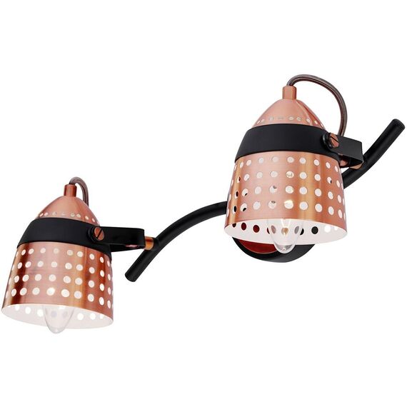Настенный светильник 2х40Вт E14, металл, чёрный/медь/белый